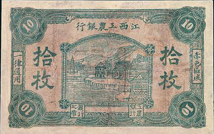 1931年11月,湘鄂贛省蘇維埃政府為統(tǒng)一貨幣,將各縣市銀行逐步統(tǒng)一為鄂東南工農(nóng)銀行;在平江、瀏陽、修水、銅鼓、宜春、萬載地區(qū)統(tǒng)一為湘鄂贛工農(nóng)銀行。由于受國民黨的經(jīng)濟(jì)封鎖,湘鄂贛蘇區(qū)一些物資價(jià)格上漲,財(cái)政赤字增加,使銀行發(fā)行貨幣增多。到1932年4月,省工農(nóng)銀行已發(fā)行紙幣30萬元,但準(zhǔn)備現(xiàn)金僅4萬余元,以致發(fā)出的紙幣無法兌現(xiàn),曾發(fā)生拒用現(xiàn)象。為此,湘鄂贛省蘇維埃政府于同月作出決定,省工農(nóng)銀行不再發(fā)行貨幣,已發(fā)行的限3個(gè)月內(nèi)全部收回,所需銀元10萬元由各縣蘇維埃政府和紅十六軍分擔(dān)籌措。貨幣收回后,湘鄂贛省工農(nóng)銀行撤銷,另成立中華蘇維埃共和國國家銀行湘鄂贛分行。
